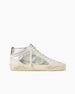 Blending Italian craftsmanship with a distinctly modern edge, these metallic leather sneakers feature hand-finished distressing that gives them a lived-in, effortlessly cool appeal. Detailed with suede trim and broguing at the toes and heels, they capture the perfect balance between luxury and streetwear ease — relaxed, versatile, and unmistakably refined.